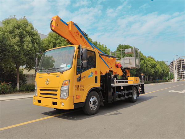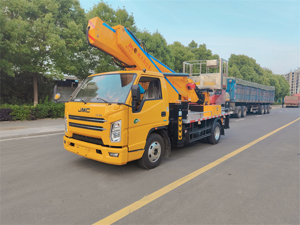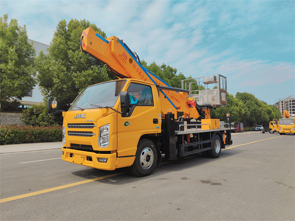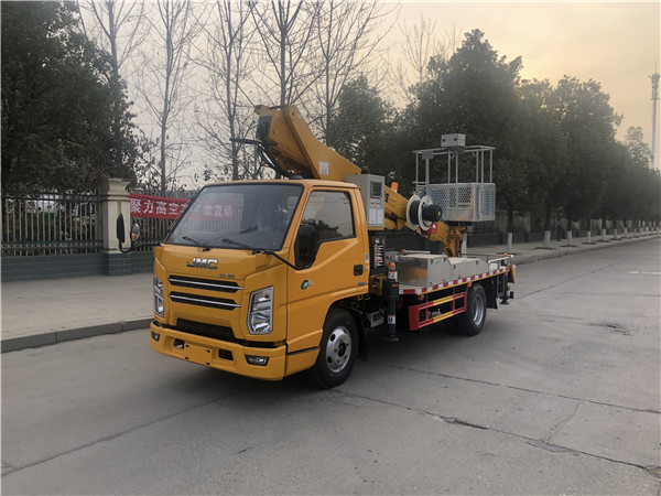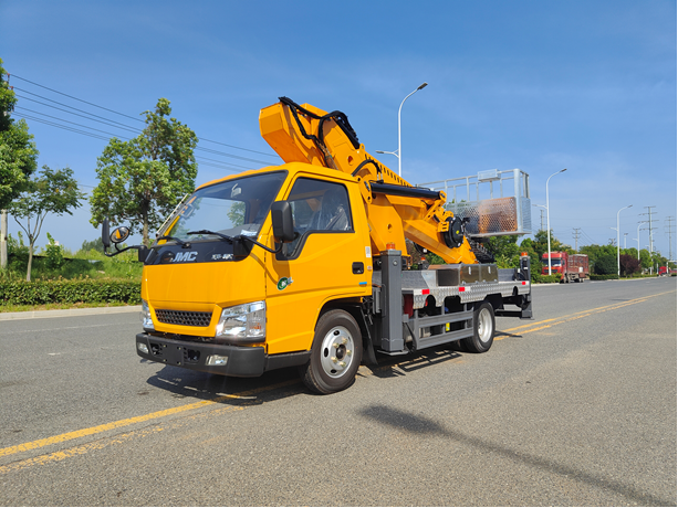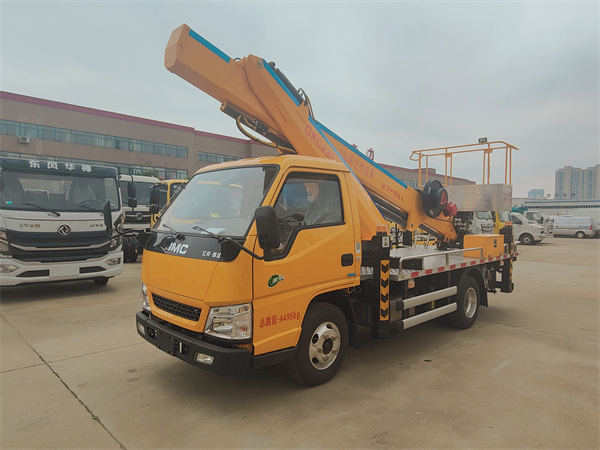 國六江鈴19.5米高空作業(yè)車 采用江鈴3815mm軸距底盤,型號:JX1083TK26帶空調(diào)、方向助力,由江鈴公司提供江鈴152馬力發(fā)動機,輪胎型號為7.50-16鋼絲胎。 江鈴19.5米高空作業(yè)車主要特點: 1、臂架采用高強度鋼板HQ60/5.0,折彎焊接成型...